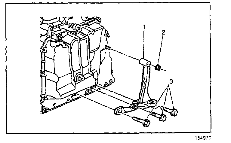 3. Install the transmission mount bracket mounting bolts (3) and nut (2).