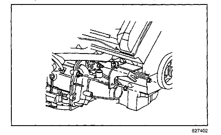 36. Install the nuts that retain the heater pipe and the range selector cable bracket to the transaxle.