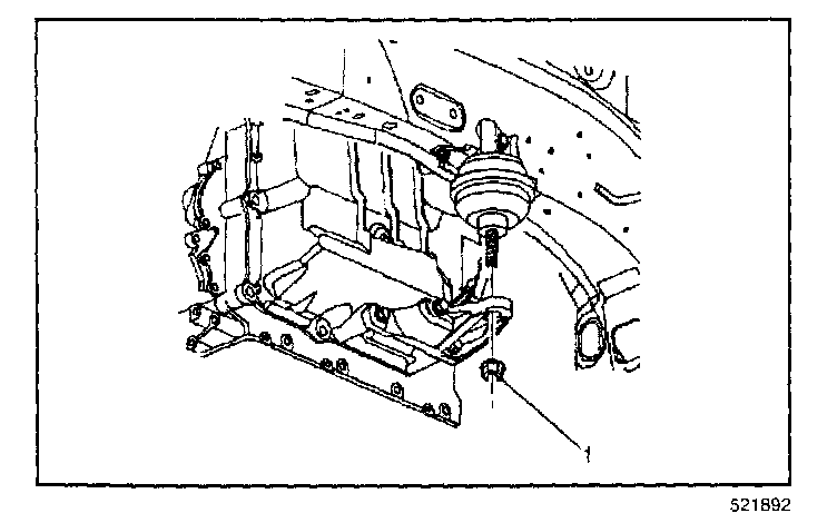 13. Raise the transaxle and install the nut (1) securing the transaxle mount to the transaxle mount bracket.
