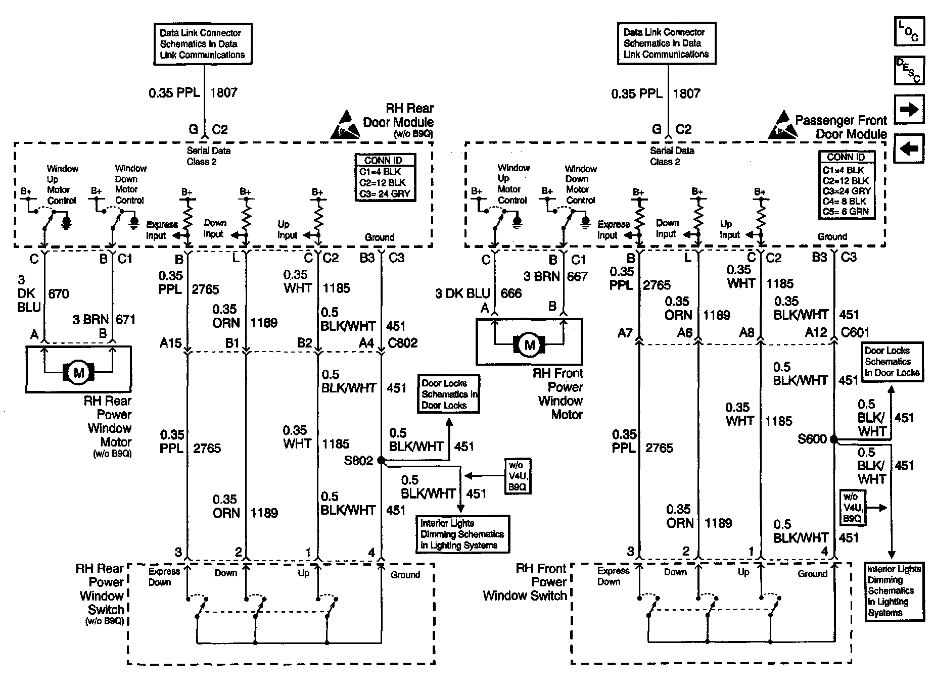 Power Window Schematics: RH Power Windows: