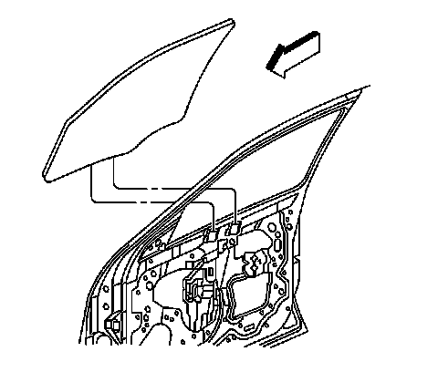 4. Remove the inner window belt sealing strip. Refer to Front Side Door Window Belt Inner Sealing Strip Replacement (Door Window Sealing Strip) .