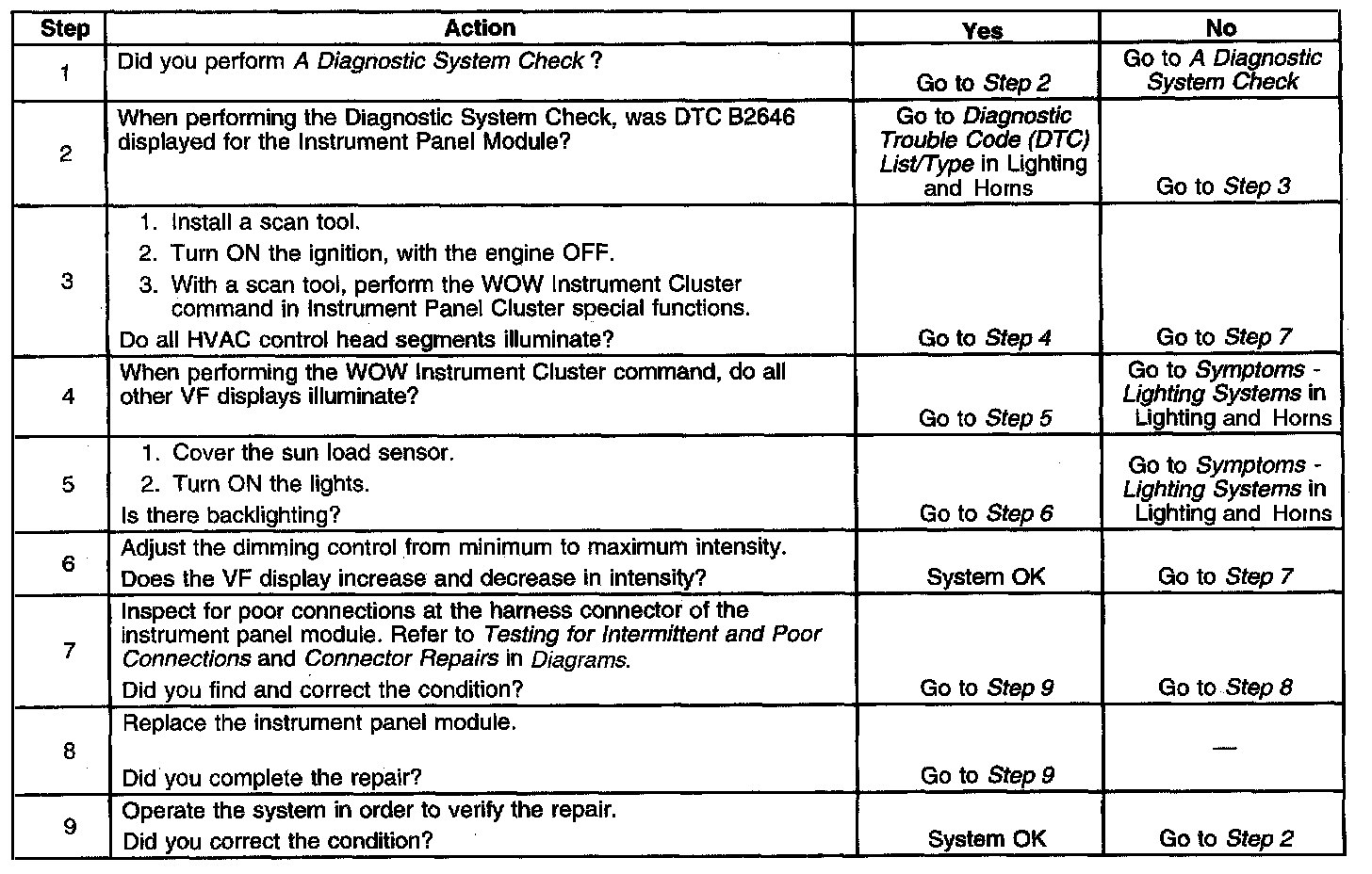Control Head Illumination/Display Does Not Operate Properly