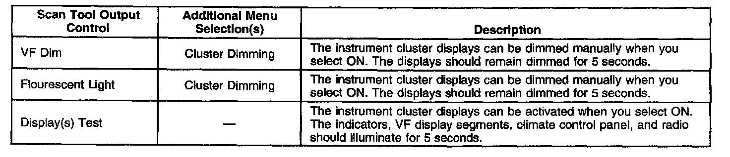 Scan Tool Output Controls - Instrument Panel