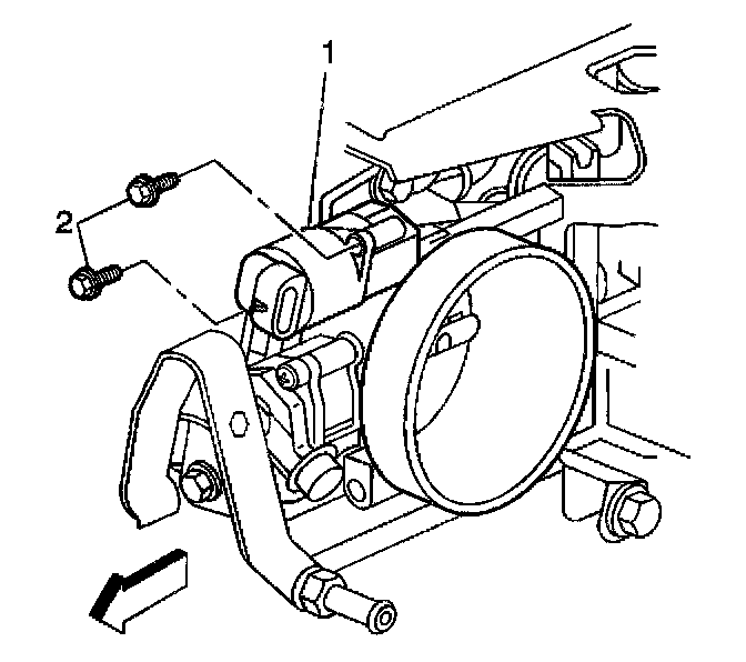 5. Remove the idle air control valve attaching screws (2) from the idle air control valve (1).