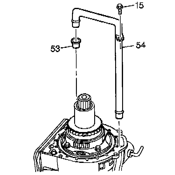 14. Remove the scavenge tube (54) by prying on the differential.