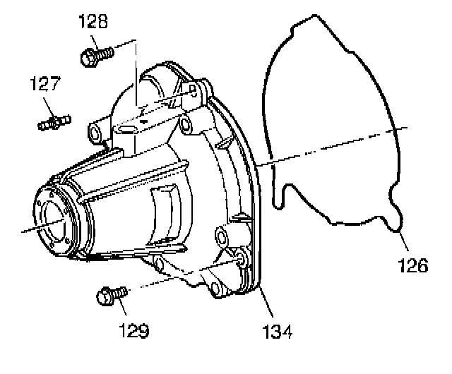 8. Apply pipe thread sealant GM P/N 12346004 to bolt threads before installation. Install the case extension bolts (128, 129).