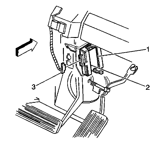4. Release the locking tab (2) in order to remove the module (1).