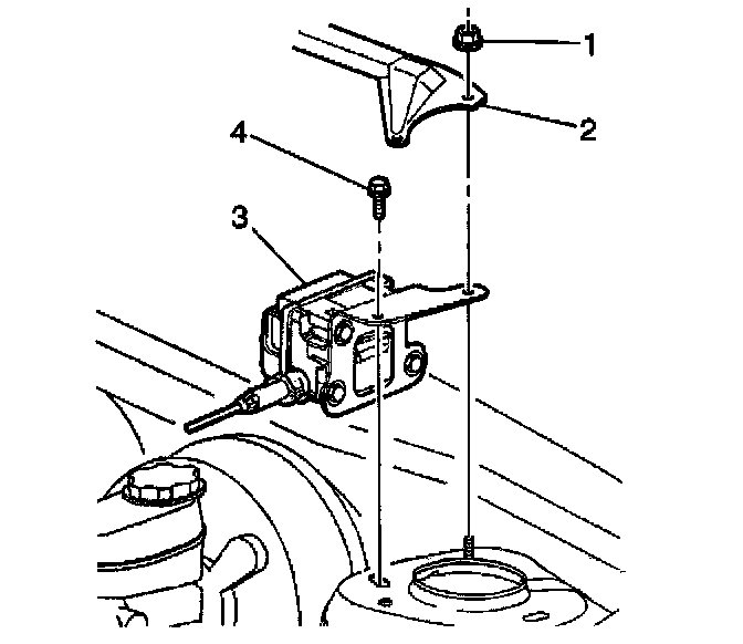 1. Install the cruise control module (1) to the mounting bracket (2).