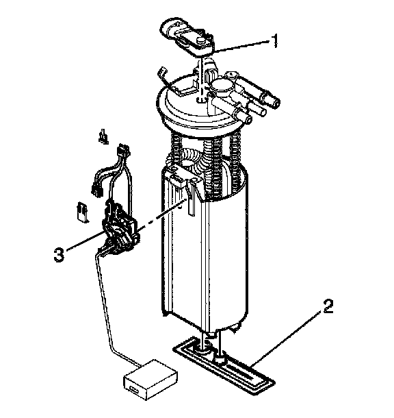 6. Disassemble the electrical connectors from the fuel level sensor assembly (3) of the fuel pump and cover assembly.