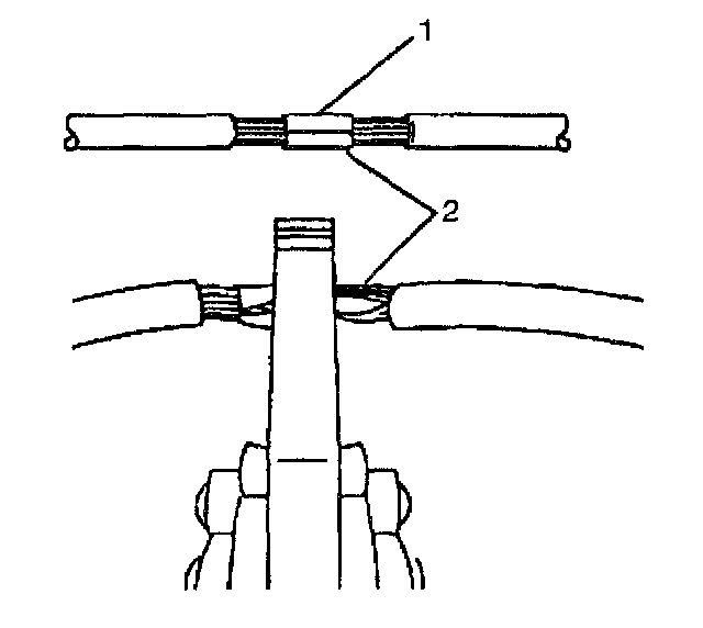 ^ Ensure that each splice is at least 40 mm (1.5 in) away from other splices, harness branches and connectors. This helps prevent moisture from bridging adjacent splices and causing damage.