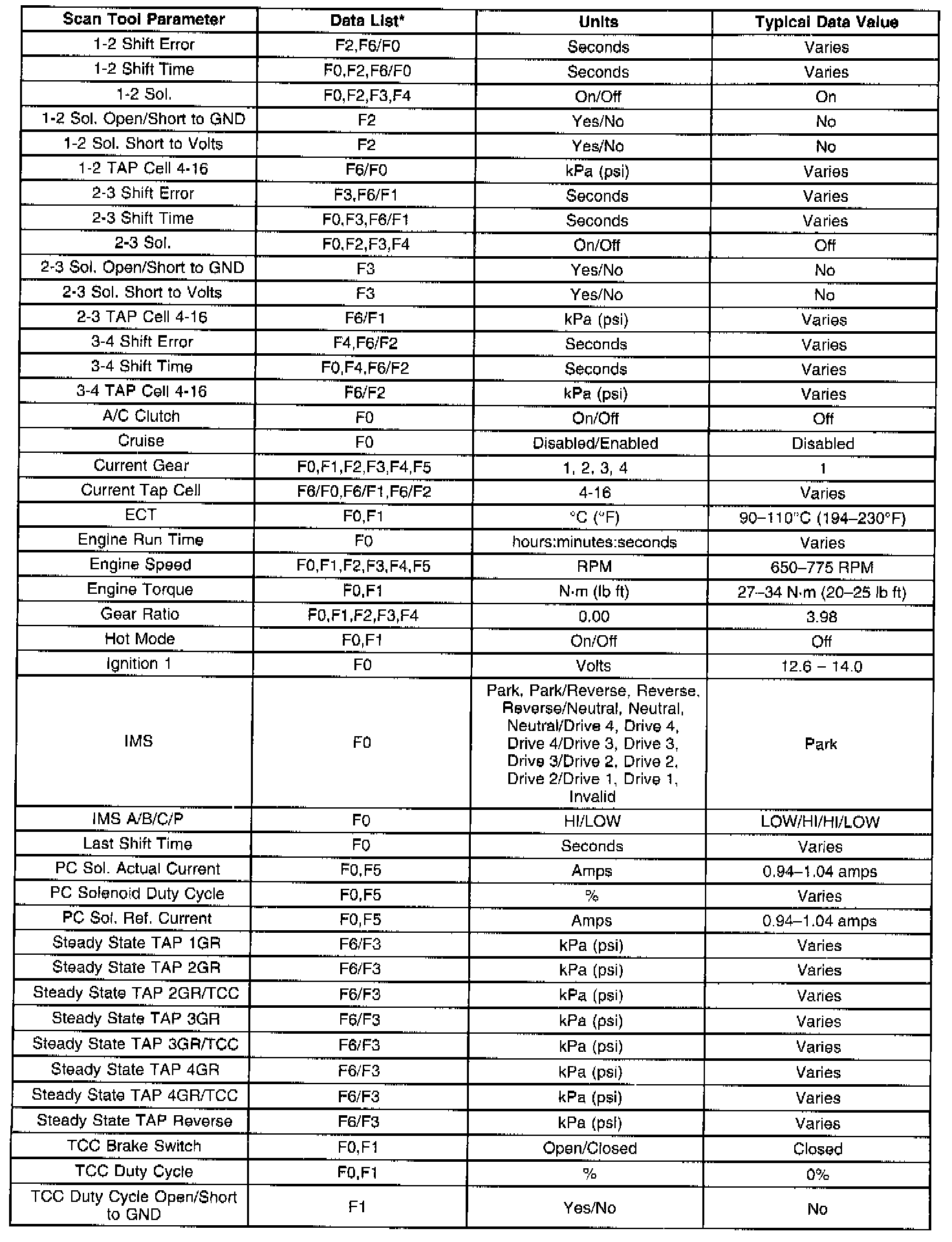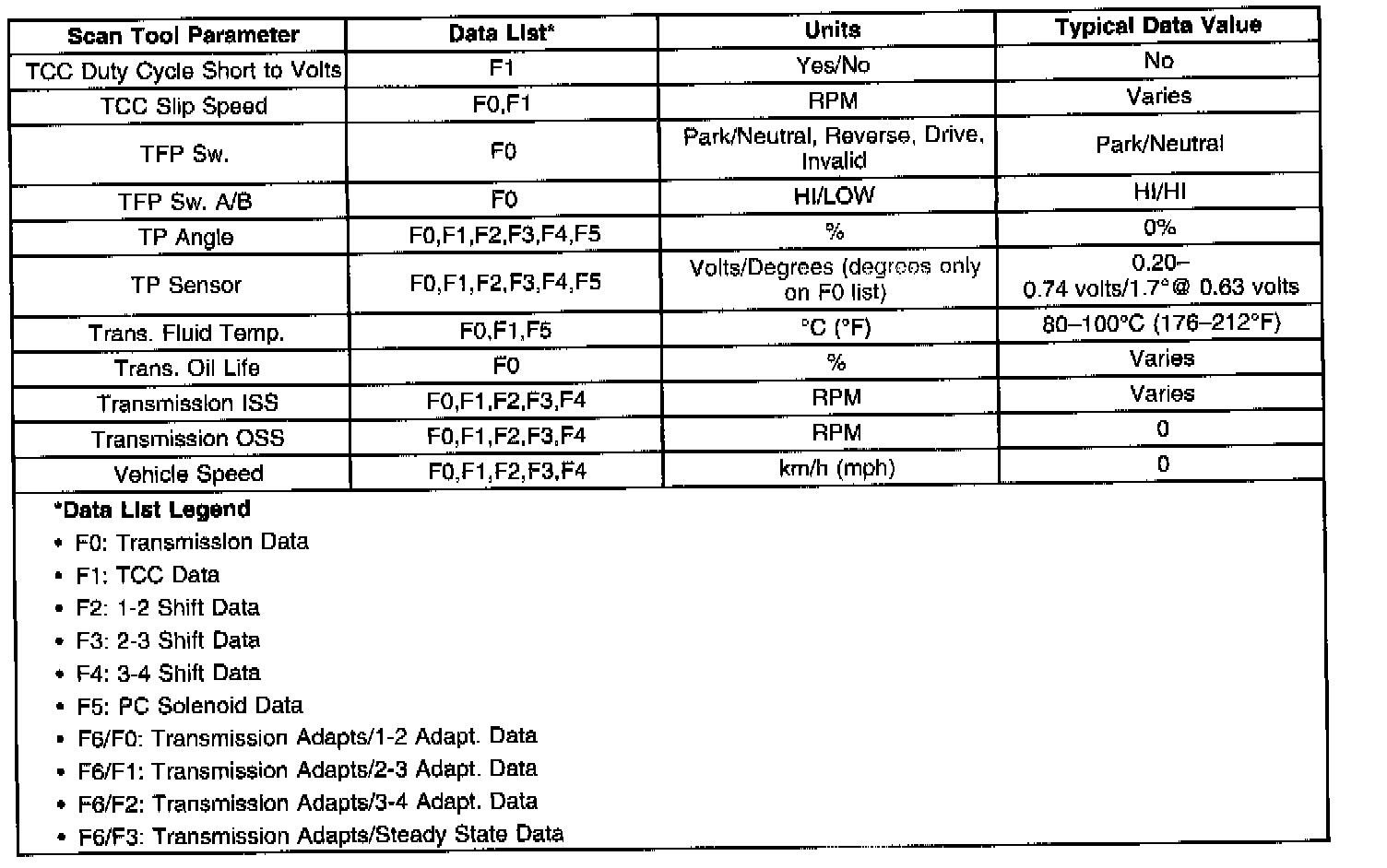 Transmission Scan Tool Data List