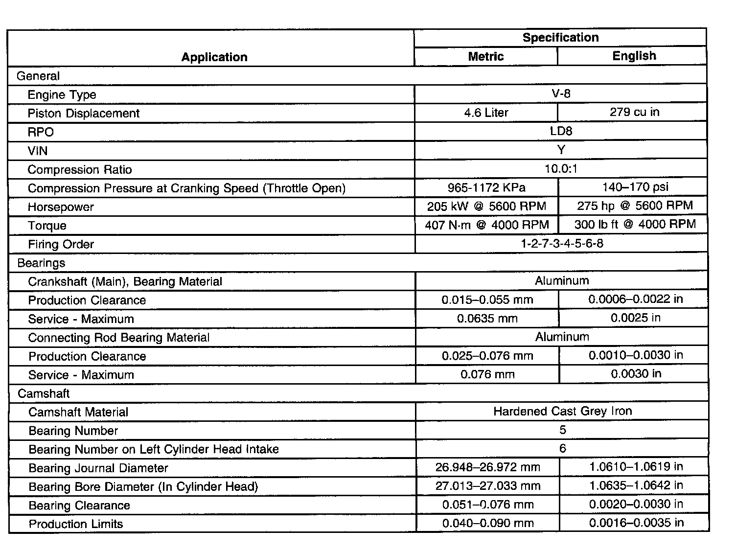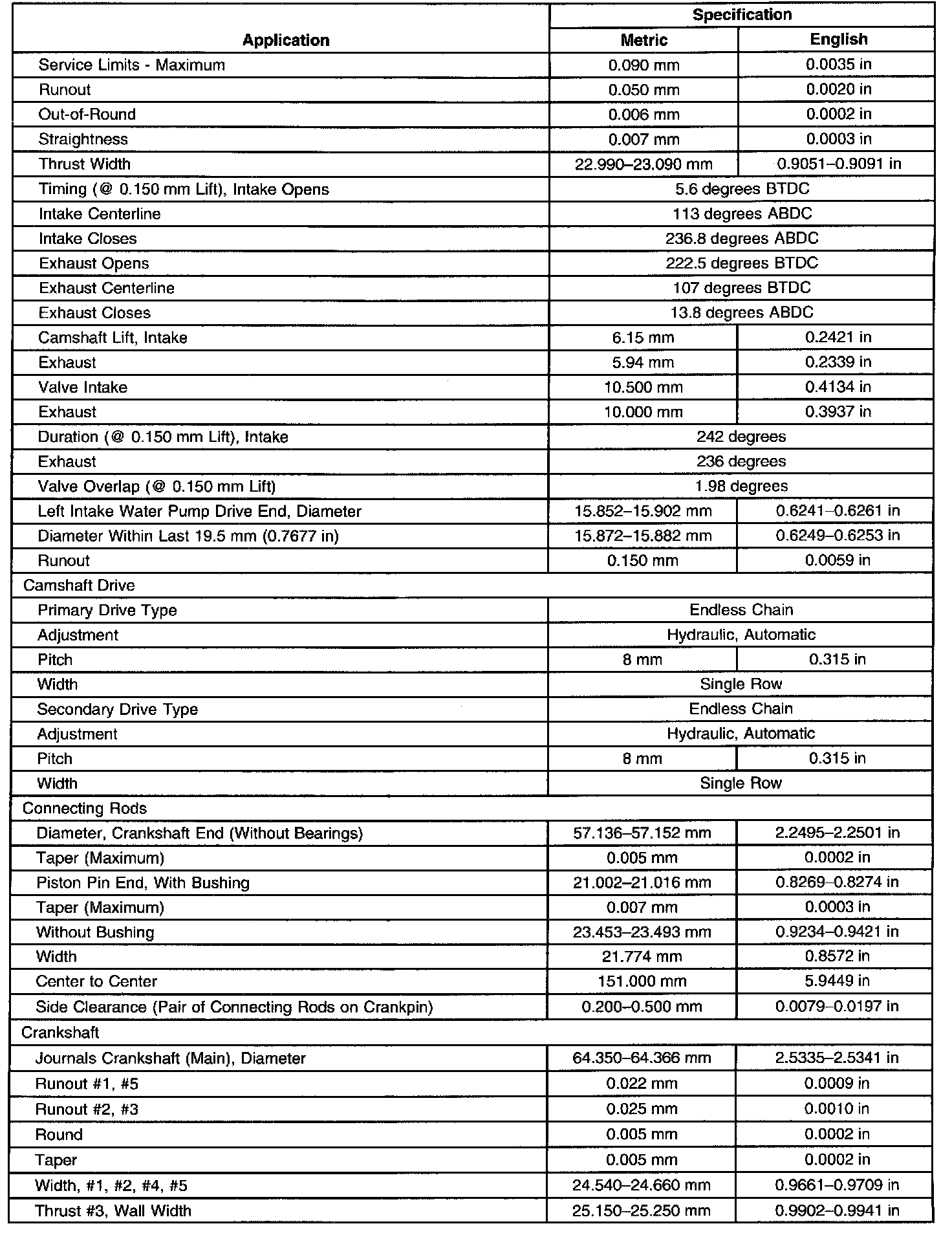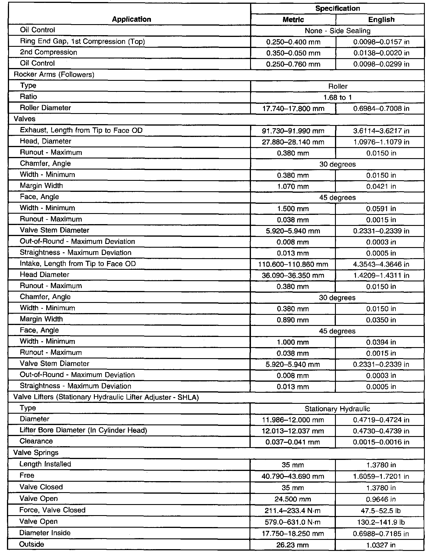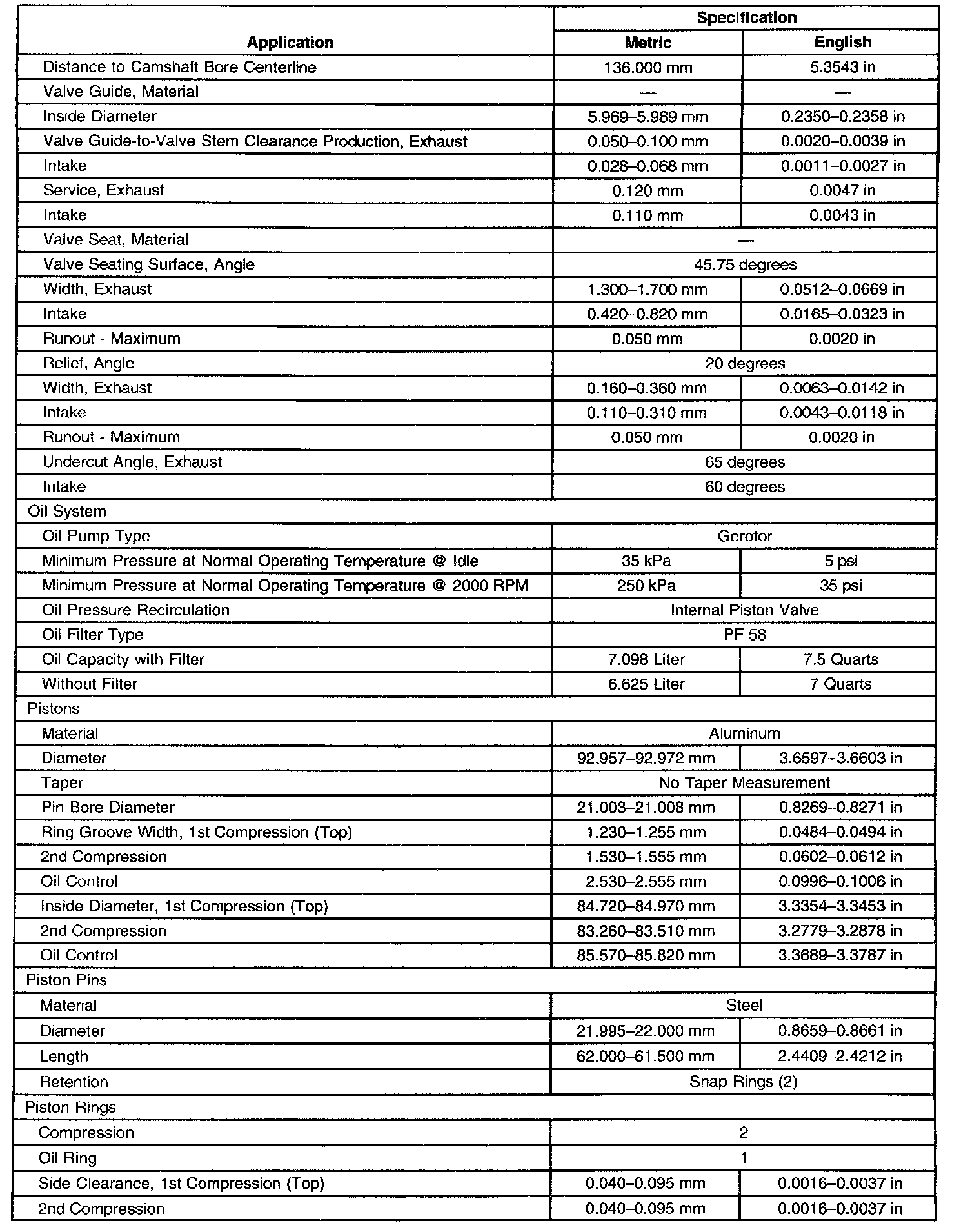 Engine Mechanical Specifications