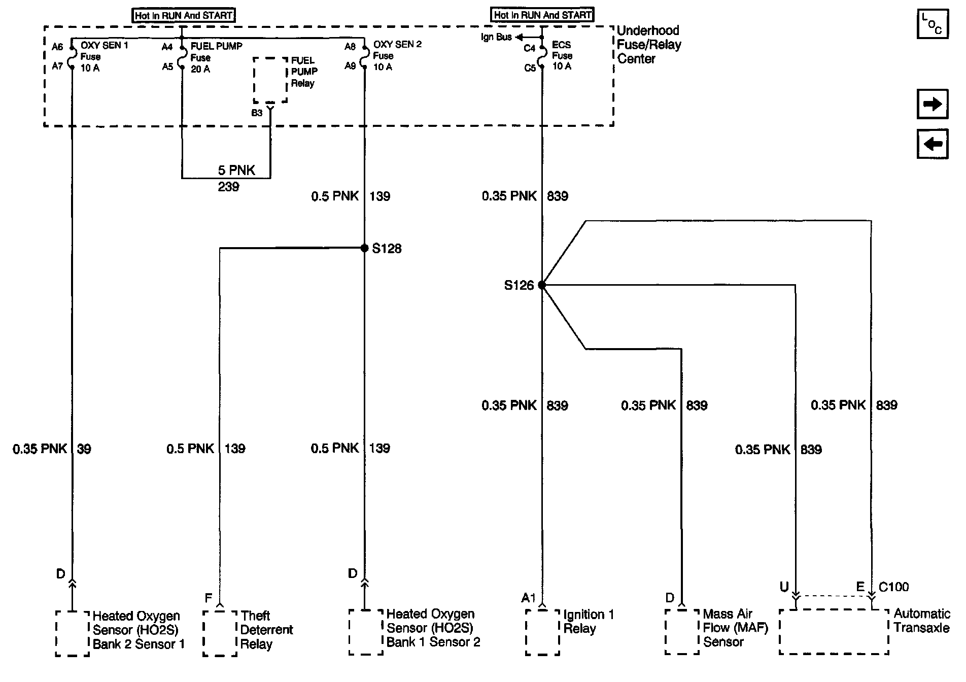 Power Distribution Schematics: OXY SEN 1, OXY SEN 2, FUEL PUMP, ECS Fuses And FUEL PUMP Relay: