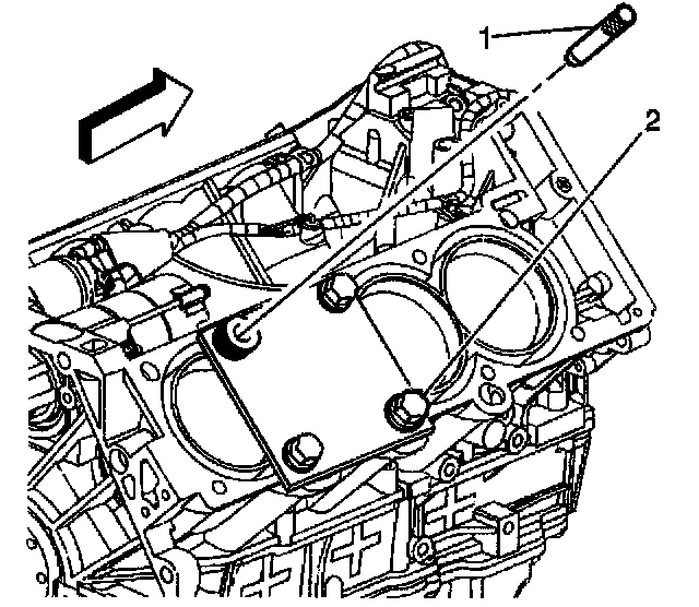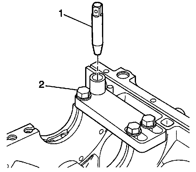3. Position the alignment pin (1) through the bushing and into the crankshaft main cap bolt hole.