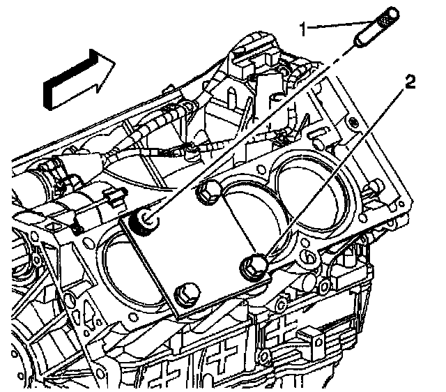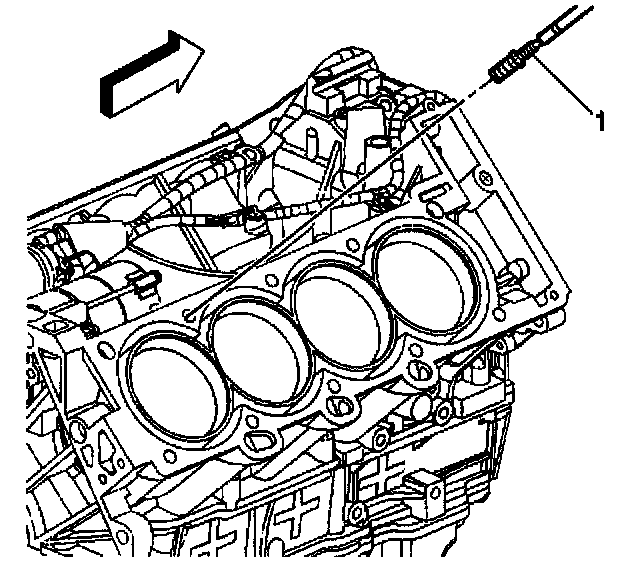 5. Remove the alignment pin (1) from the cylinder head bolt hole.