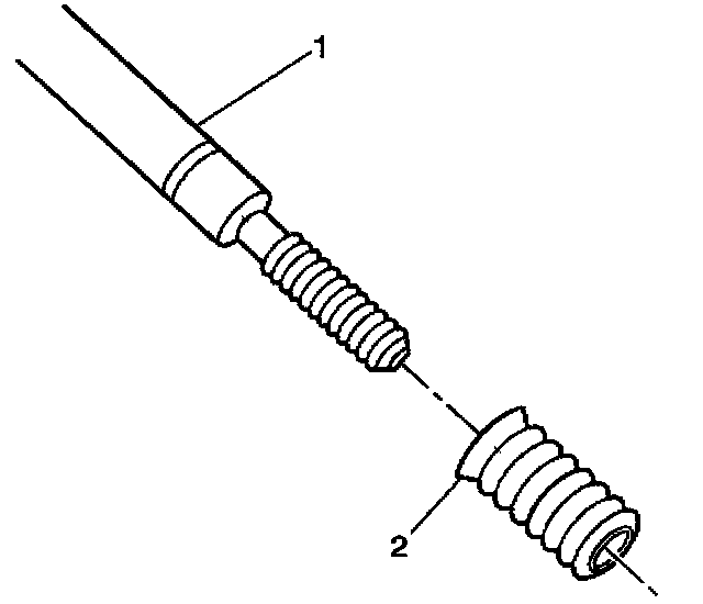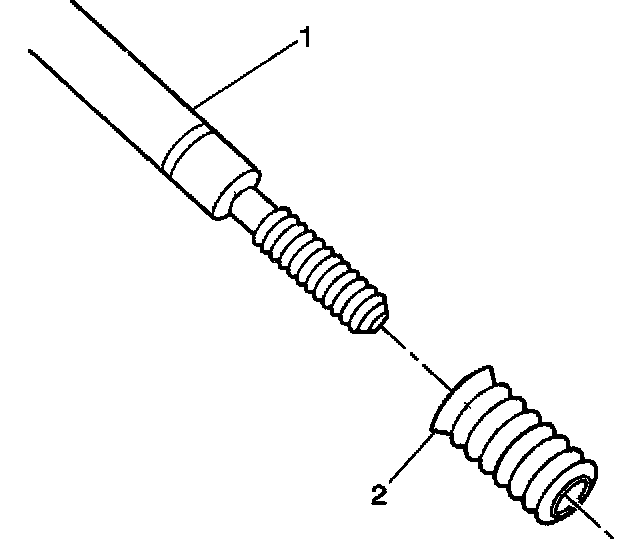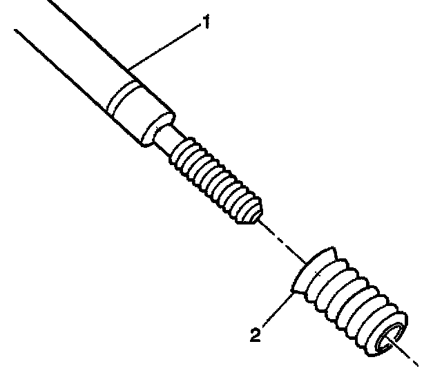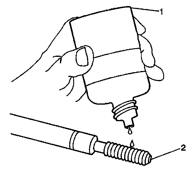 18. Apply threadlock sealant GM P/N 12346004, J 42385-109, LOCTITE 277, or equivalent (1) to the insert OD threads (2).