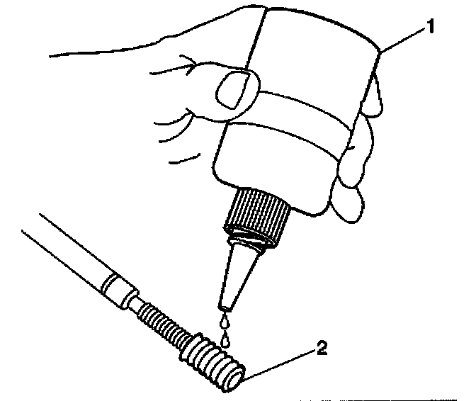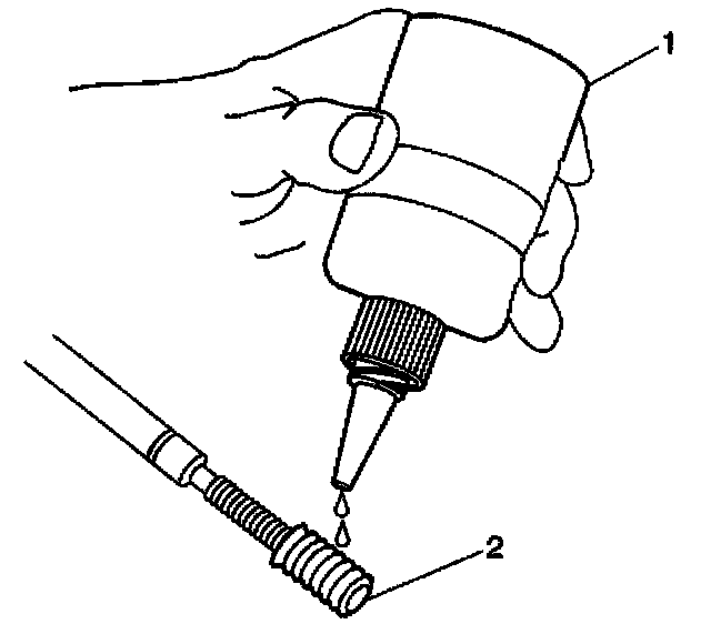 17. Apply threadlock sealant GM P/N 12346004, J 42385-109, LOCTITE 27700 or equivalent (1) to the insert OD threads (2).