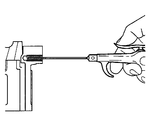 14. Spray cleaner GM P/N 12346139, P/N 12377981 or equivalent into the tapped hole.