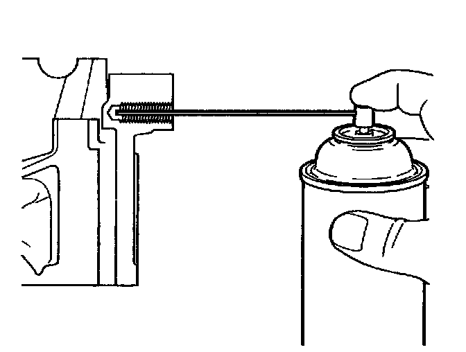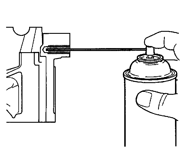 11. Spray cleaner GM P/N 12346139, P/N 12377981 or equivalent into the tapped hole.