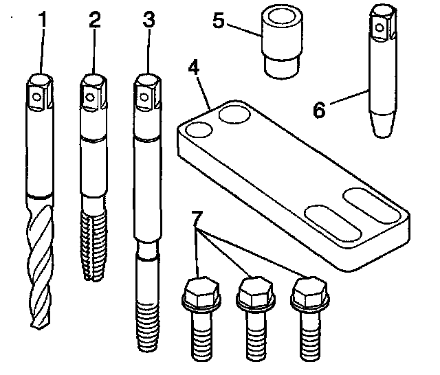 Important: The use of a cutting type fluid GM P/N 1052864, WD 40 or equivalent is recommended when performing the drilling, counterboring and tapping procedures.