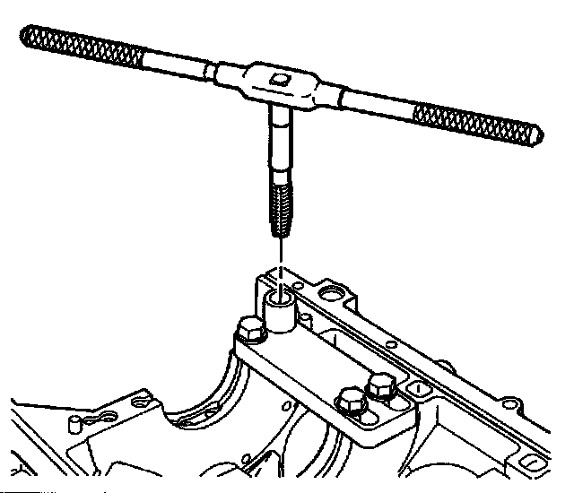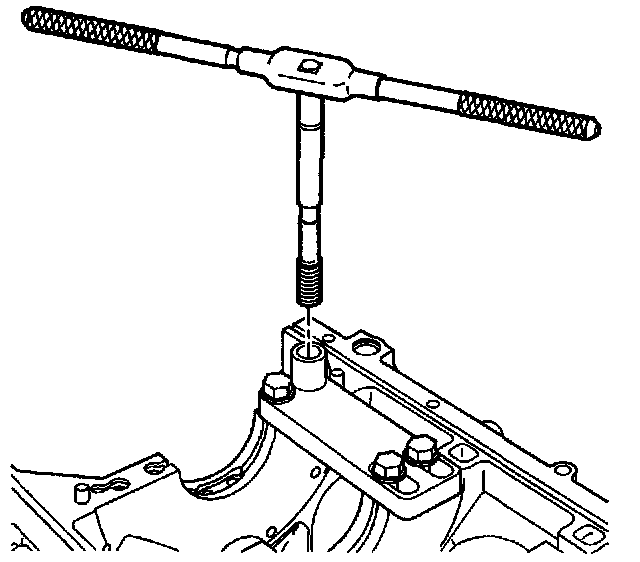8. Using a suitable tapping wrench, tap the threads of the drilled hole.