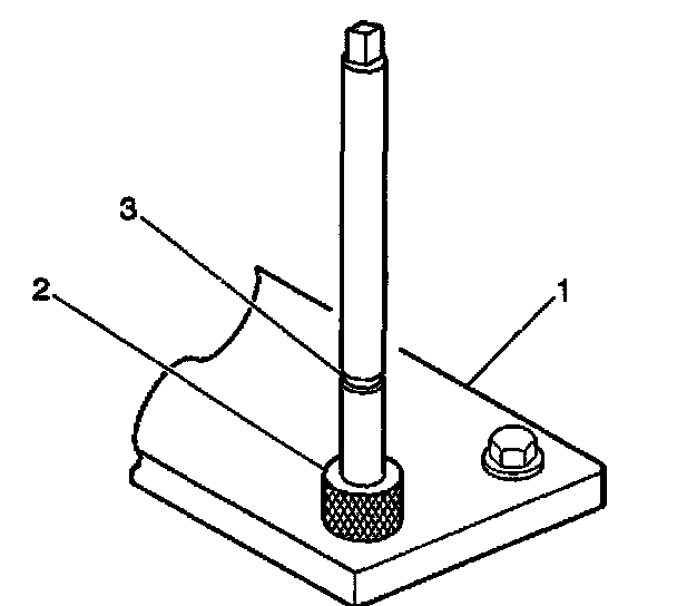 4. With the alignment pin in the desired cylinder head bolt hole, tighten the fixture retaining bolts (2).