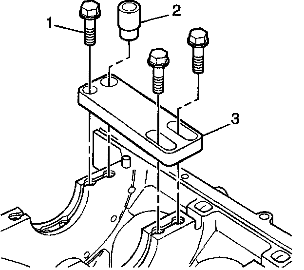2. Loosely install the fixture plate bolts (1) into the remaining crankshaft main cap bolt holes.
