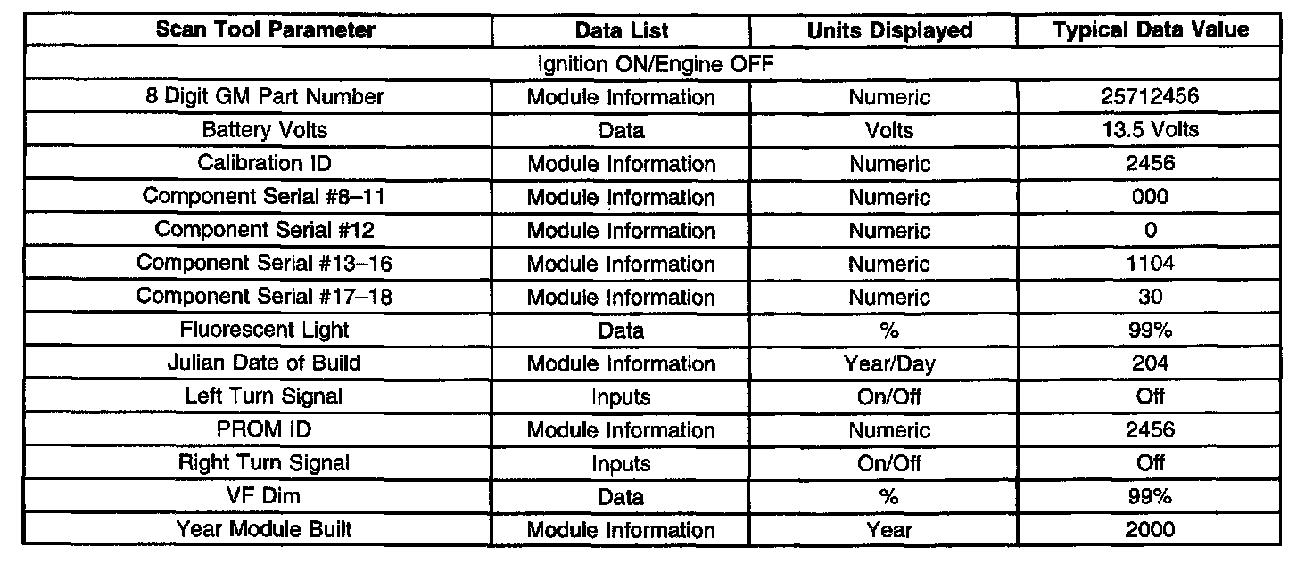 Scan Tool Data List - Instrument Panel Cluster (IPC)