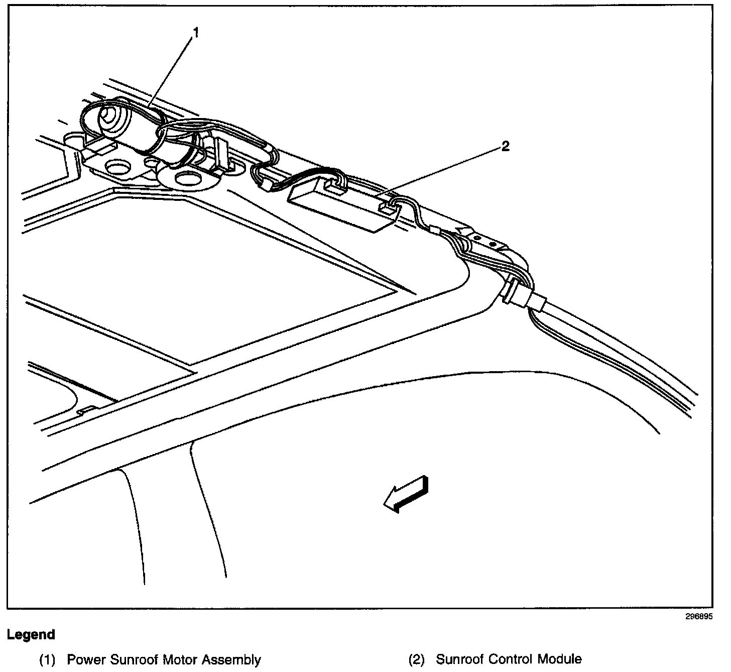 Rear of the passenger compartment, behind the headliner near the rear of the sunroof