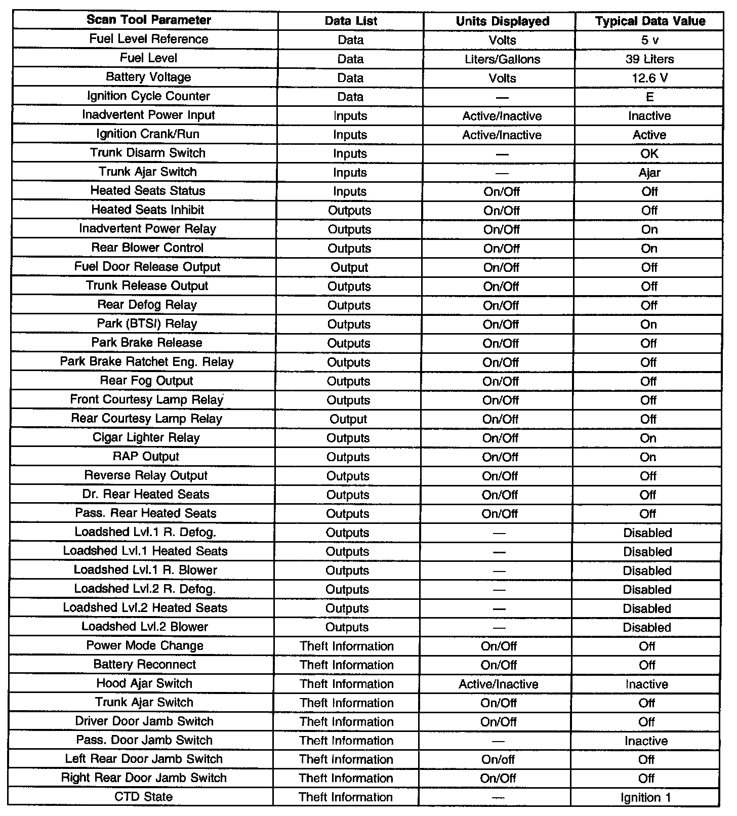 Scan Tool Data List