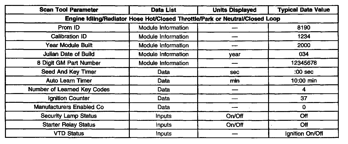 Scan Tool Data List - Antitheft System