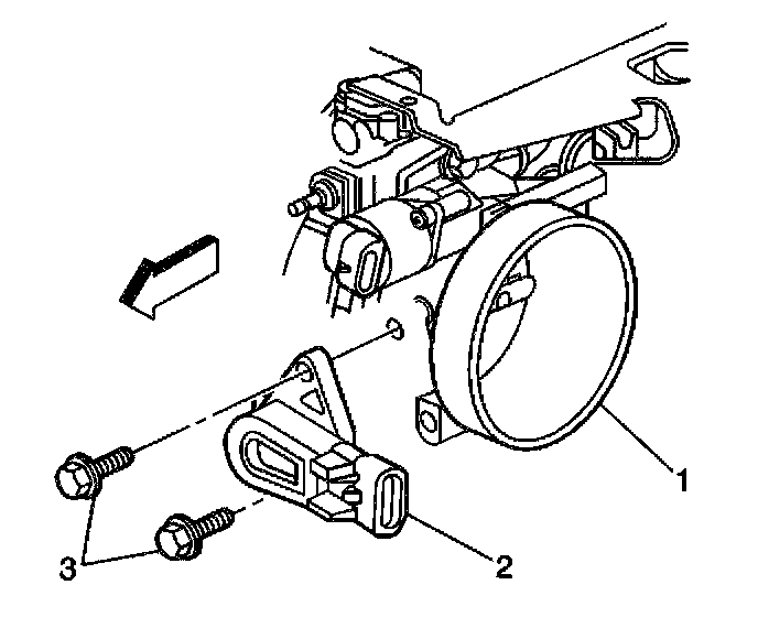 6. Remove the TP sensor mounting bolts (3) from the TP sensor (2).