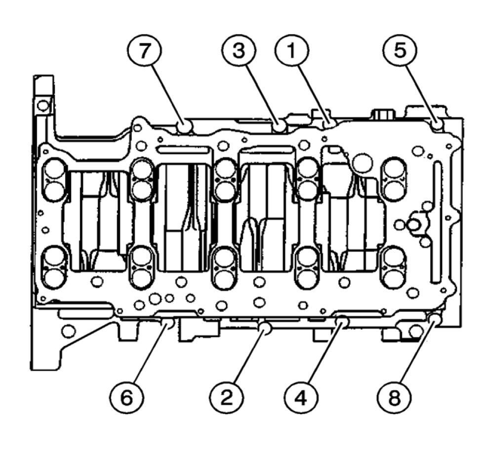 Tighten the upper to lower crankcase perimeter bolts (numbers 1 through 8) to 30 Nm (22 lb ft).