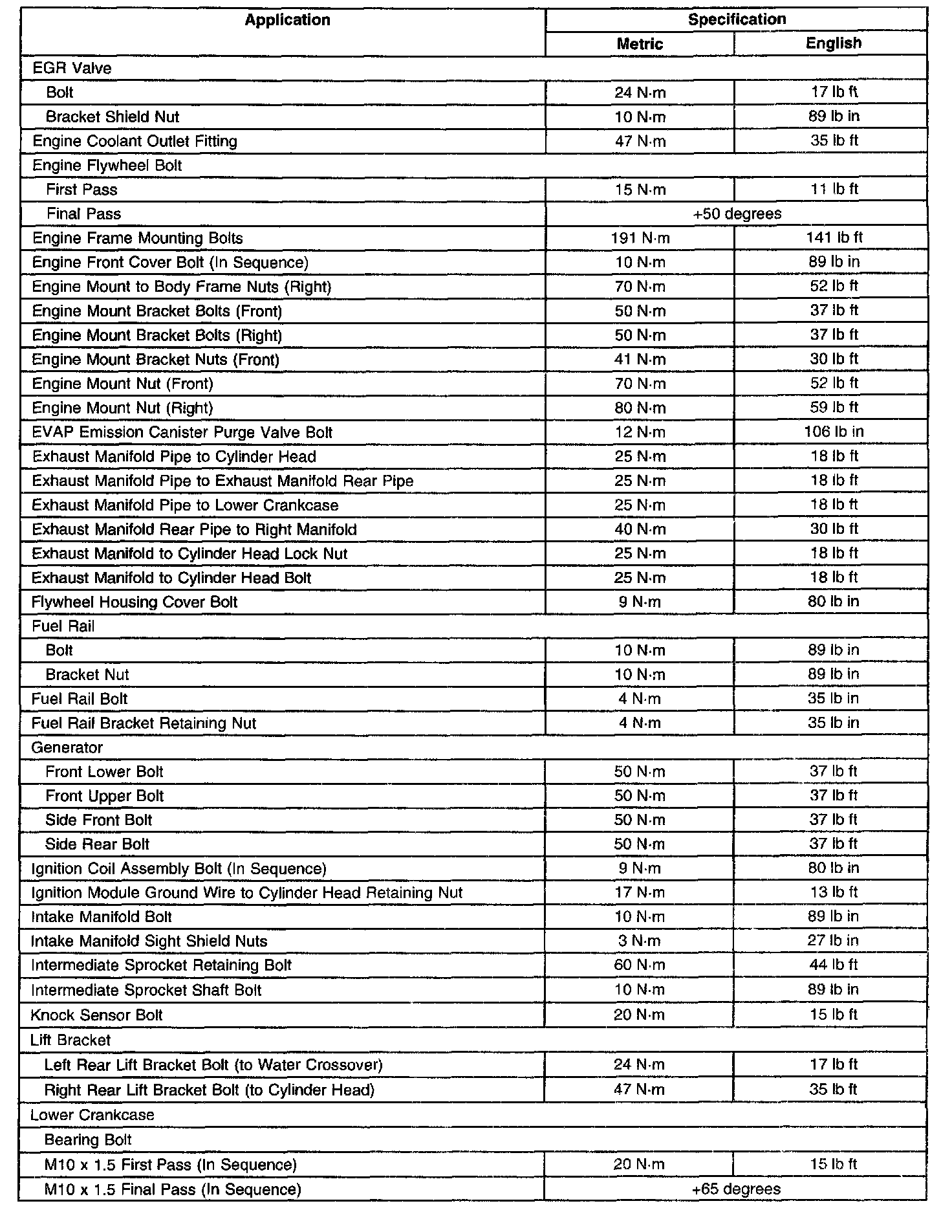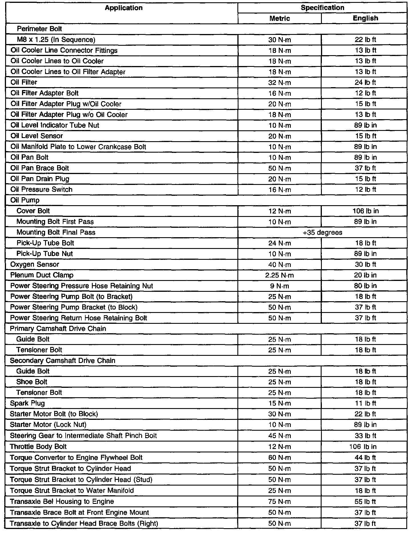 Fastener Tightening Specifications