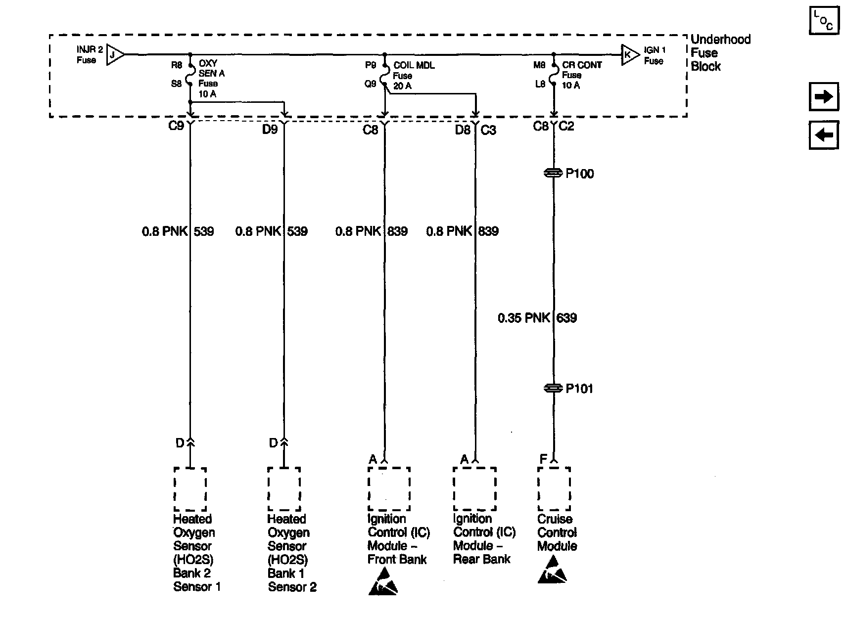 Power Distribution Schematics: OXYSENA, OXYSENB, DIS And CRCONT Fuses: