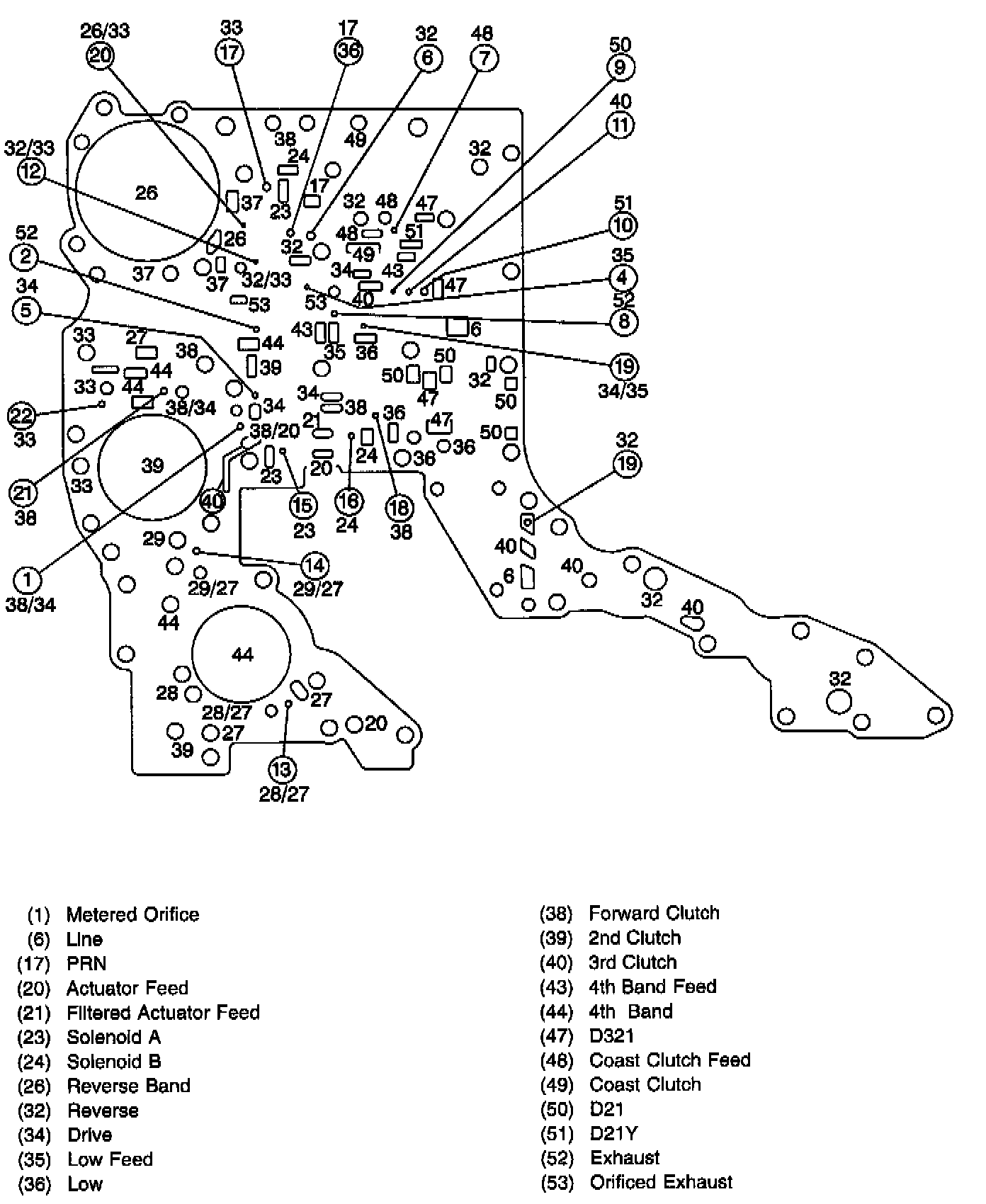 Spacer Plate and Gasket Assembly Fluid Passages (Lower Control Valve Body to Channel Plate)