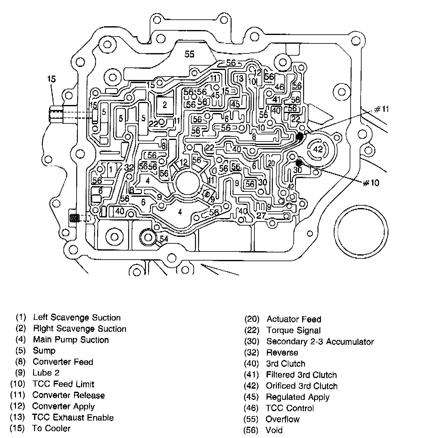 Accumulator Housing Fluid Passages (Lower Channel Plate Side)