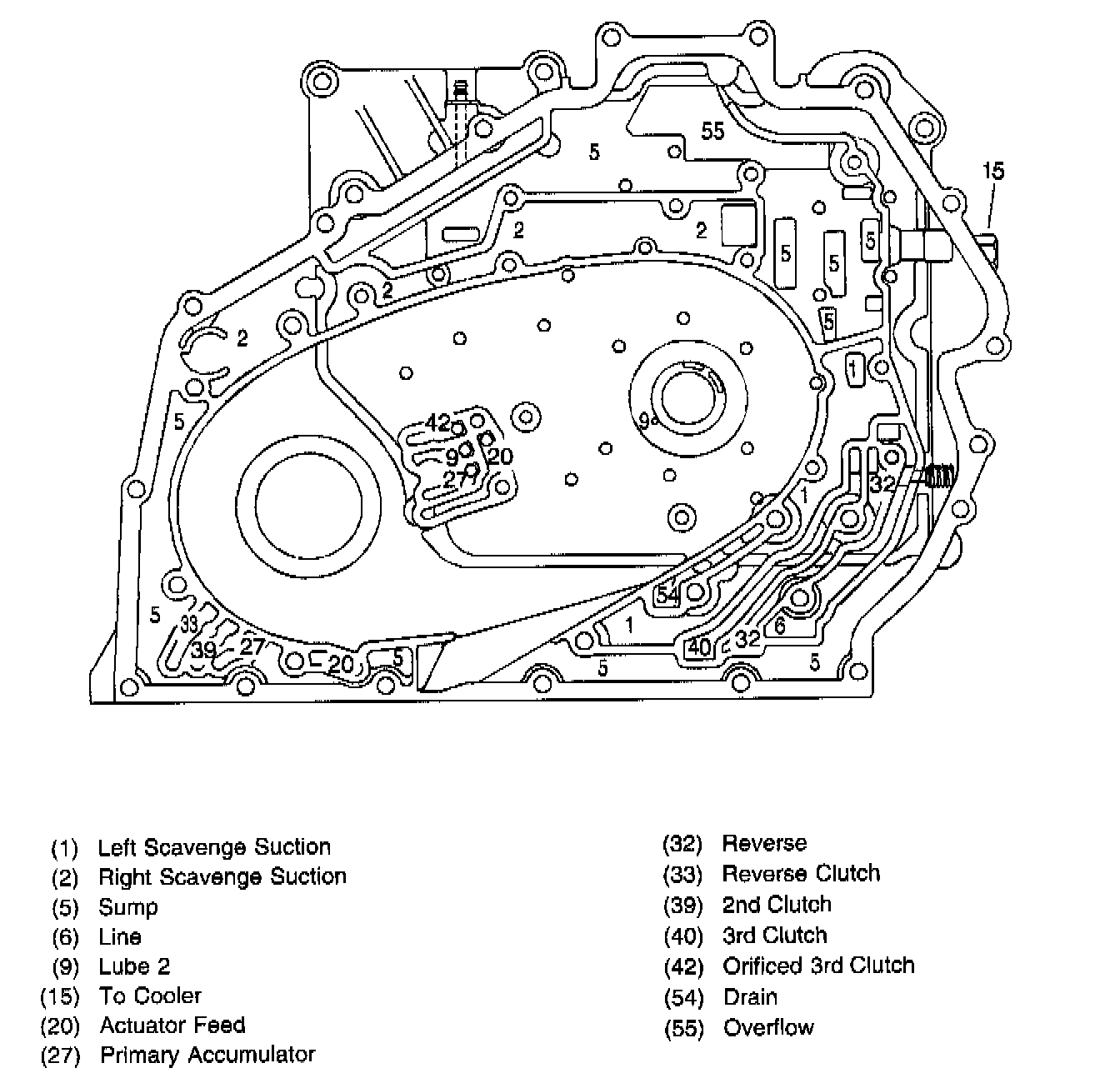 Spacer Plate Fluid Passages (Secondary Pump Body and Upper Control Valve Body to Case Cover)