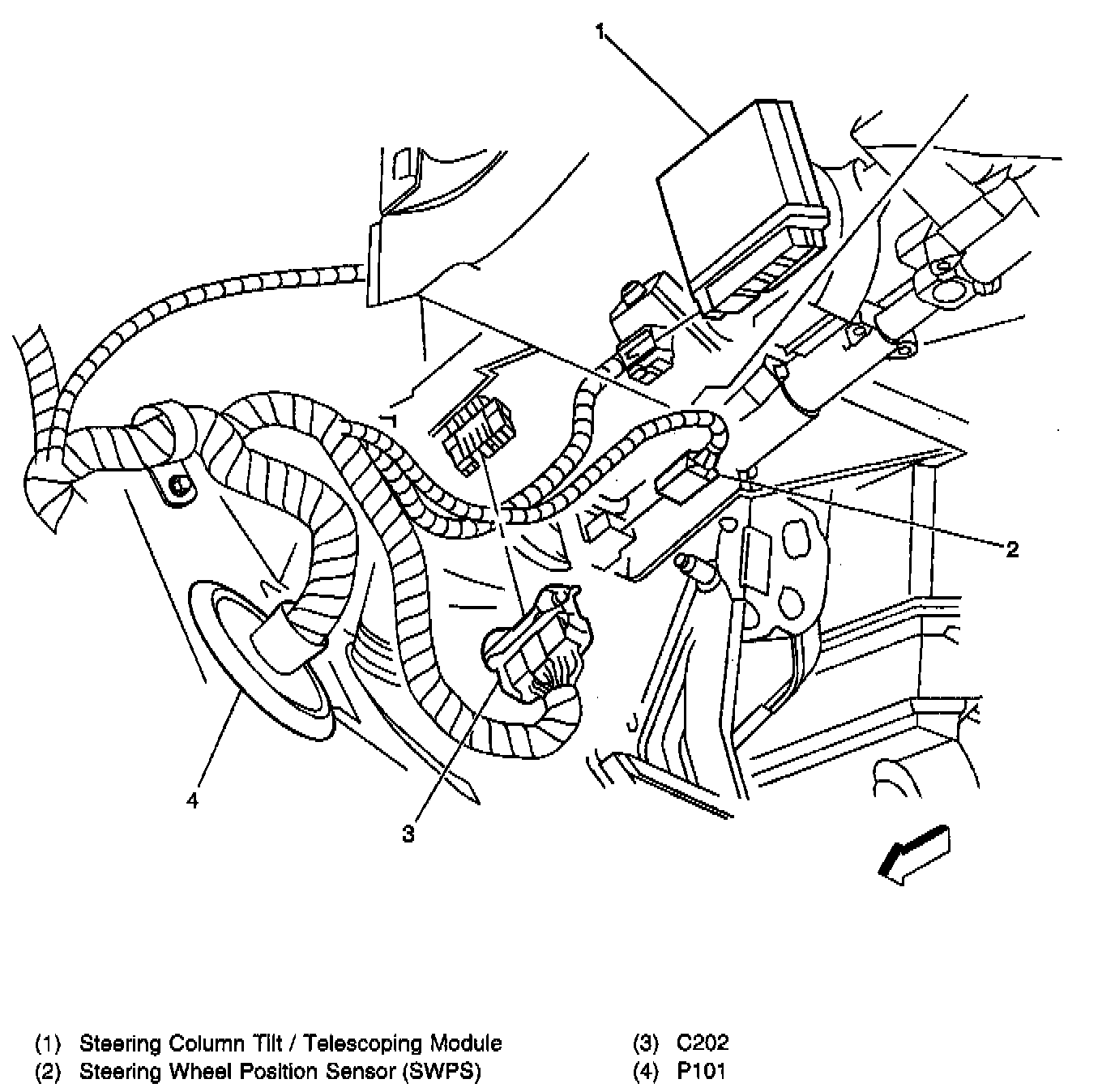 Passenger Compartment, at the Base of the Steering Column