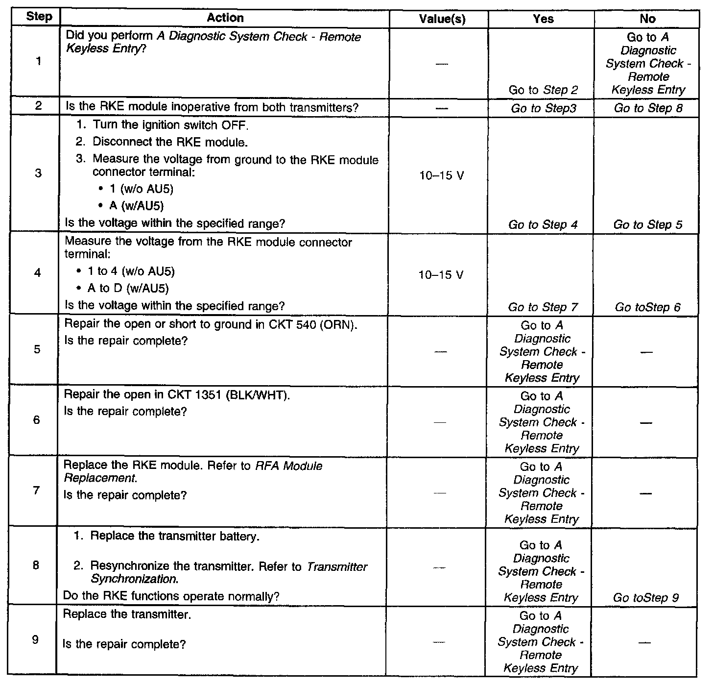 Keyless Entry System Inoperative