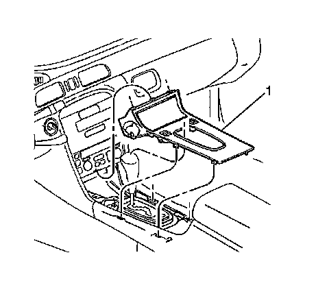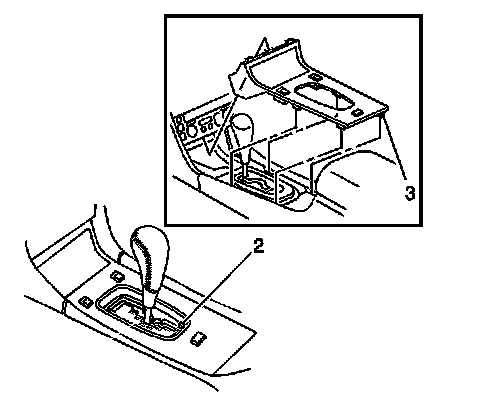 1. Insert your fingers (if necessary, use a flat plastic tool) between the trim plate and the PRNDL at the RH rear corner of the chrome trim (2).