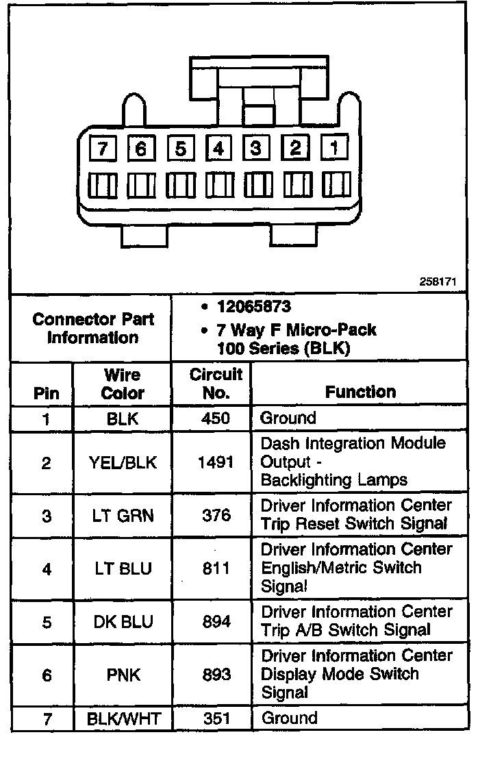 LH Driver Information Center (DIC) Switch: