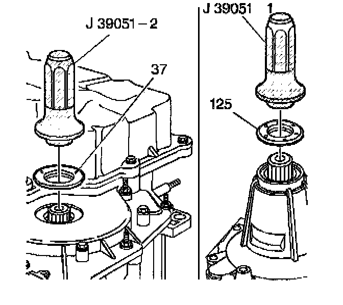 1. Install the left-hand drive axle seal (37) using the J 39051-2 and a hammer.