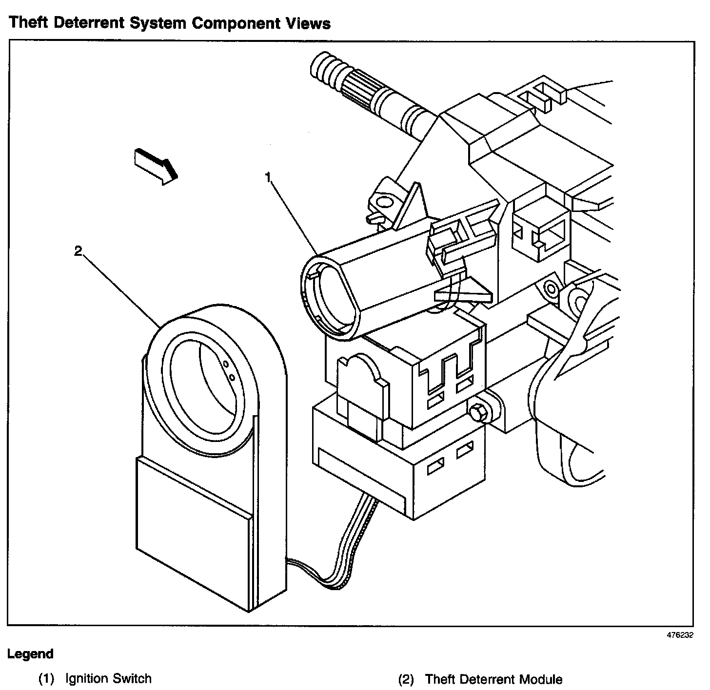 Mounted to the ignition switch, on the upper RH side of the steering column