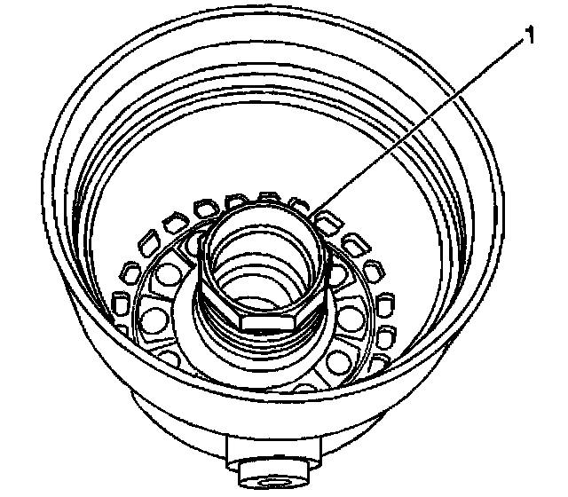 7. If removing the oil filter cartridge housing from the engine block, use a socket on the sleeve (1) on the inside of the housing.