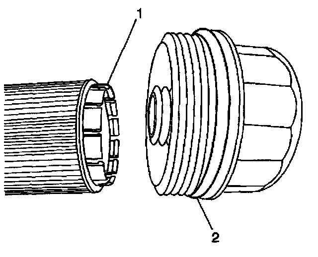 Important: Ensure the tabs (1) on the oil filter cartridge lock firmly into the plastic cap.