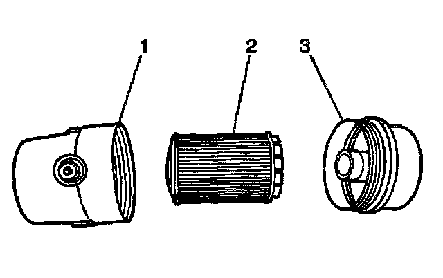 5. Remove the oil filter cartridge (2) from the plastic cap.