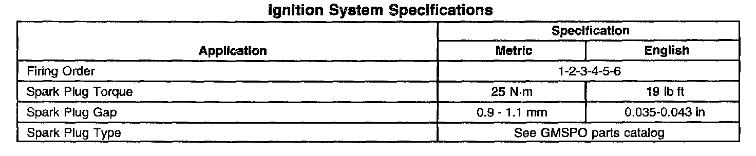 Ignition System Specifications: