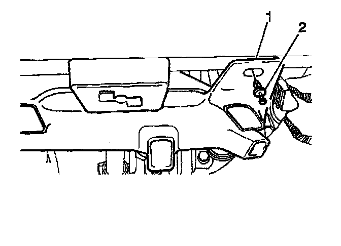 2. Remove the passenger side floor air outlet retainer (2).