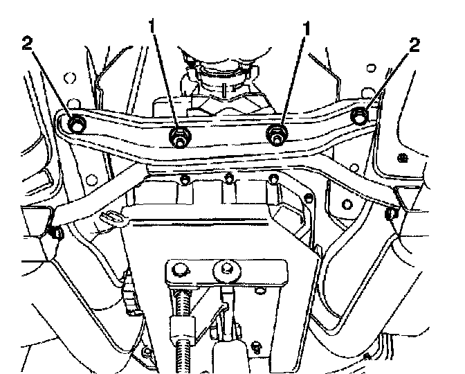 4. Remove the crossmember-to-body bolts (2).